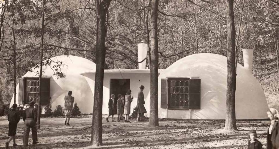 I would be remiss if I didn't point out that there's a kind of bubble-house that I see every time I drive up into San Francisco from Silicon Valley. The "Flintstone House" is a delightful sight that has made kids happy for the past 4 decades. While it's not a Neff Airform house, it's in the same style. (Although I liked it better when it was white and looked like an igloo, but what do I know.)